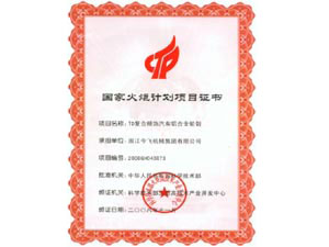 国家火炬计划项目证书