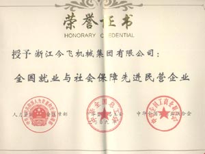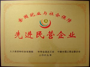 全国就业与社会保障先进民营企业证书